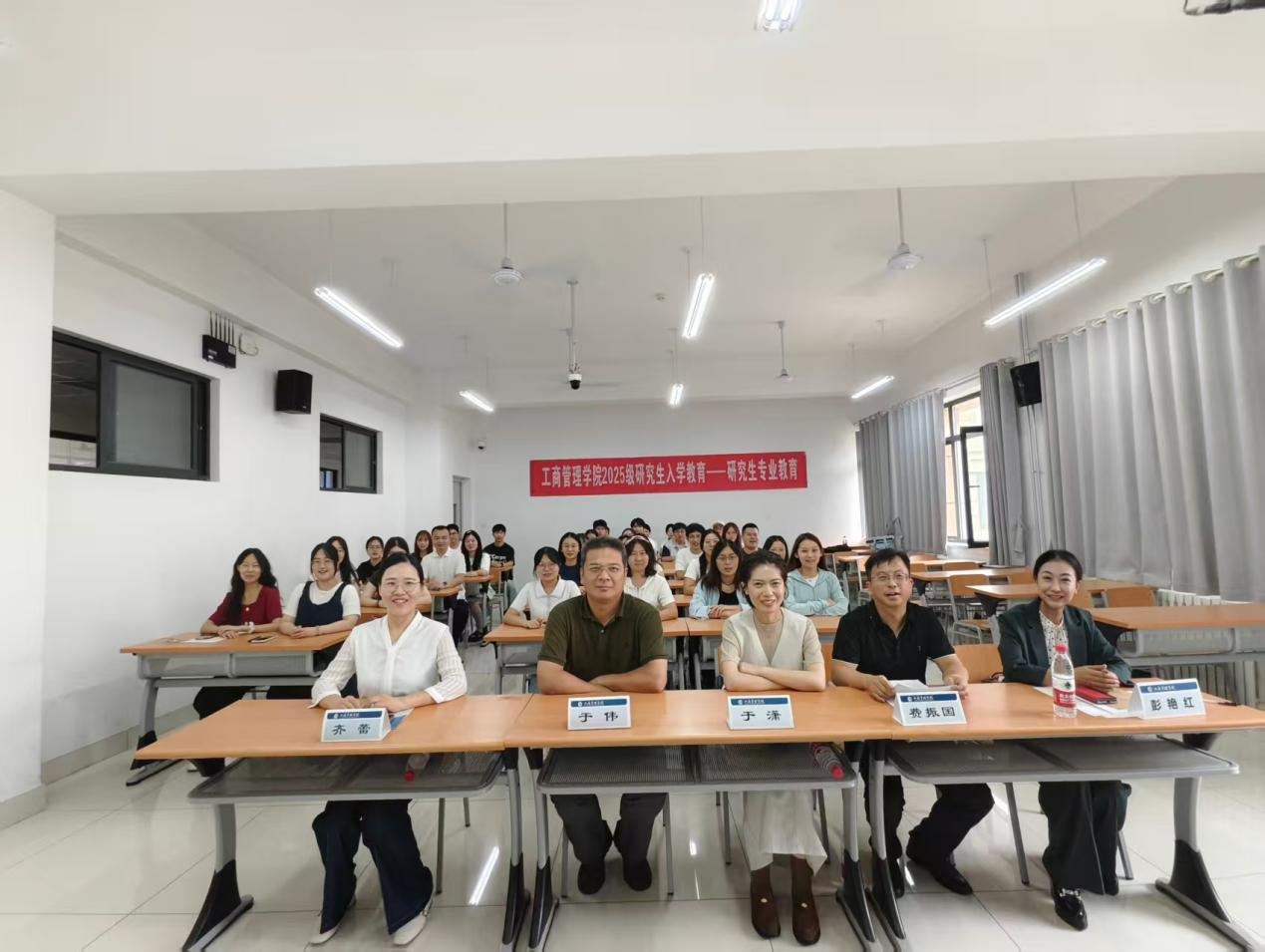 党委副书记彭艳红,院长助理于潇,工商管理系主任、教学发展中心主任费振国,文化和旅游系主任于伟及人力党支部副书记、科研发展中心主任齐蕾出席。活动由彭艳红主持,2025级全体研究生参加。