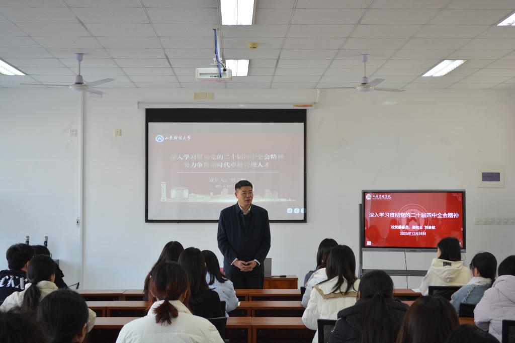 刘旻航围绕党的二十届四中全会的重大意义、“十五五”时期在基本实现社会主义现代化进程中的重要地位、“十五五”时期经济社会发展的指导方针、主要目标、战略任务和重大举措等方面,系统阐释了全会精神的核心要义与实践指向。刘旻航强调,“十五五”时期是基本实现社会主义现代化夯实基础、全面发力的关键时期,对加快高水平科技自立自强、推进教育科技人才发展提出更高要求。推动经济社会高质量发展,亟需一大批具有扎实学识、国际视野、数智素养与创新能力的高水平卓越管理人才。