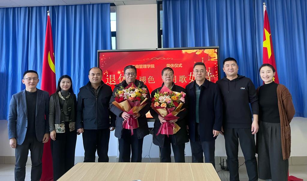 党委书记赵世民、院长徐鹏、党委副书记彭艳红、郑大伟、副院长陈庆江,工商管理系教师费振国、徐海燕、夏兆敏、工会副主席张景赛以及2025年度荣休教师代表齐聚一堂,共同回顾执教岁月,畅叙情谊,展望未来。