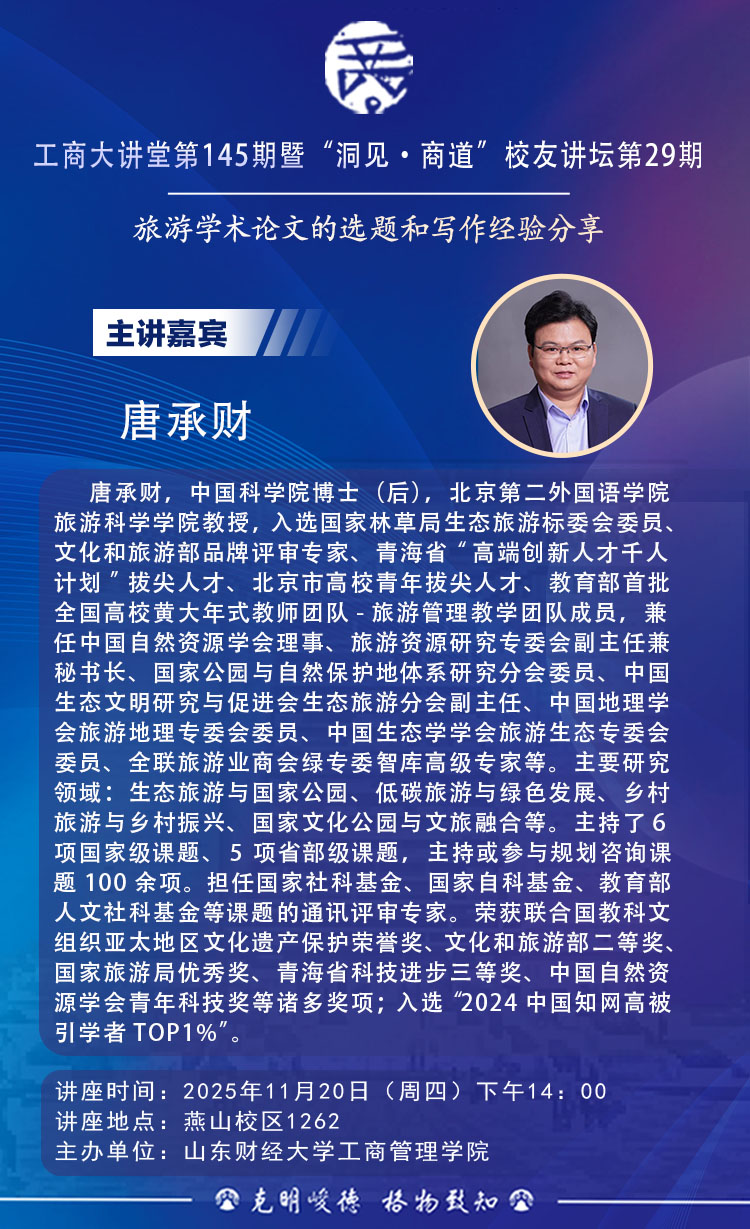 工商大讲堂第145期——旅游学术论文的选题和写作经验分享